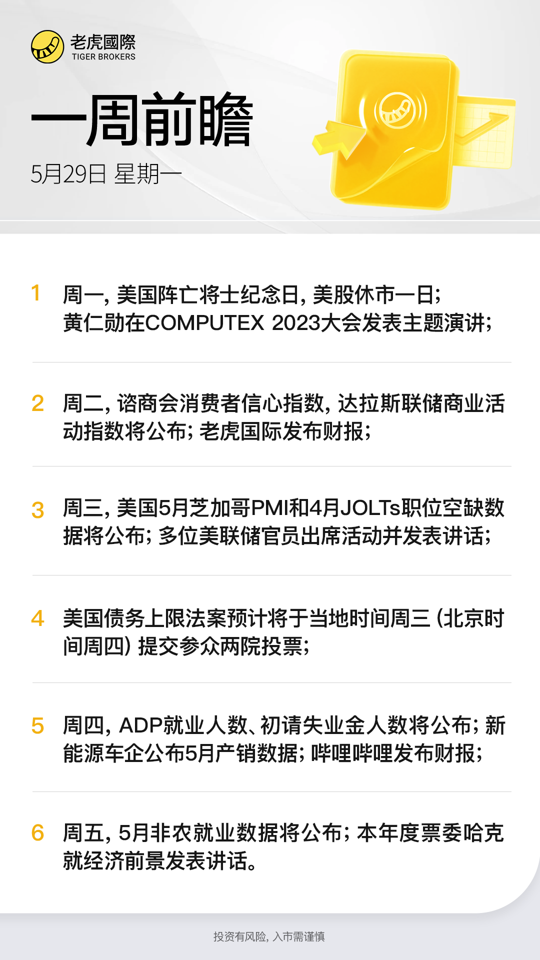 此外,美国债务上限法案预计将于当地时间周三(北京时间周四)提交参众两院,投资者也需要密切关注。