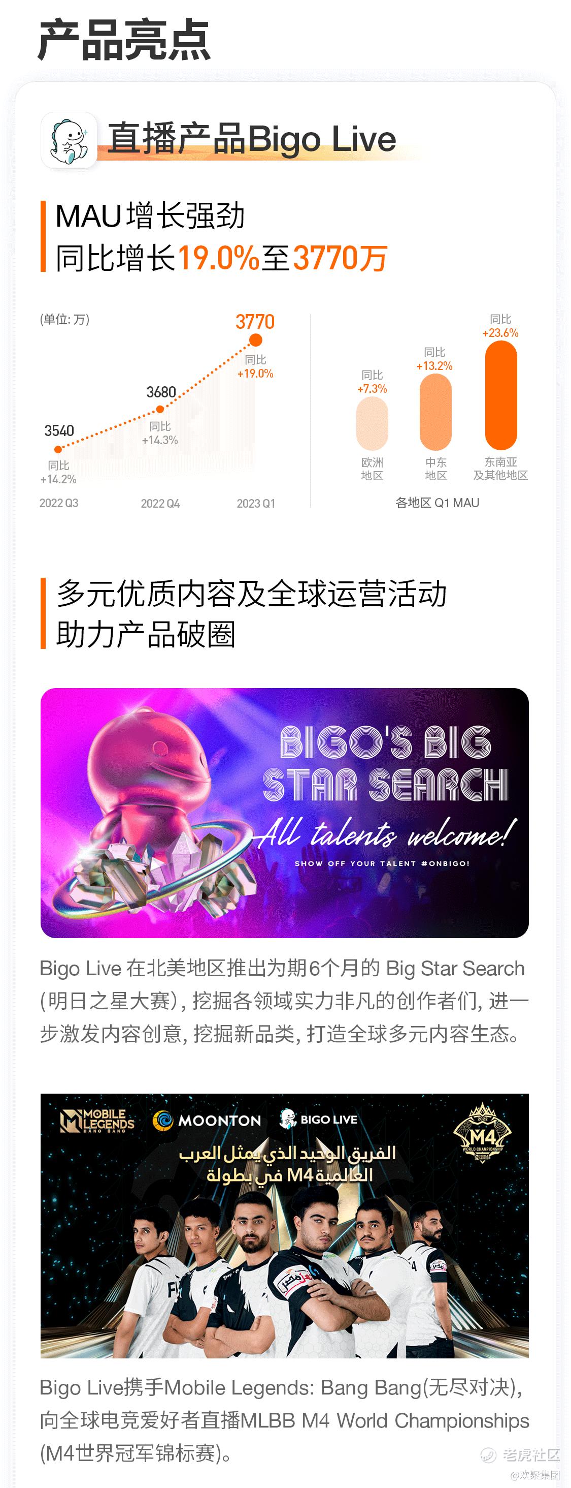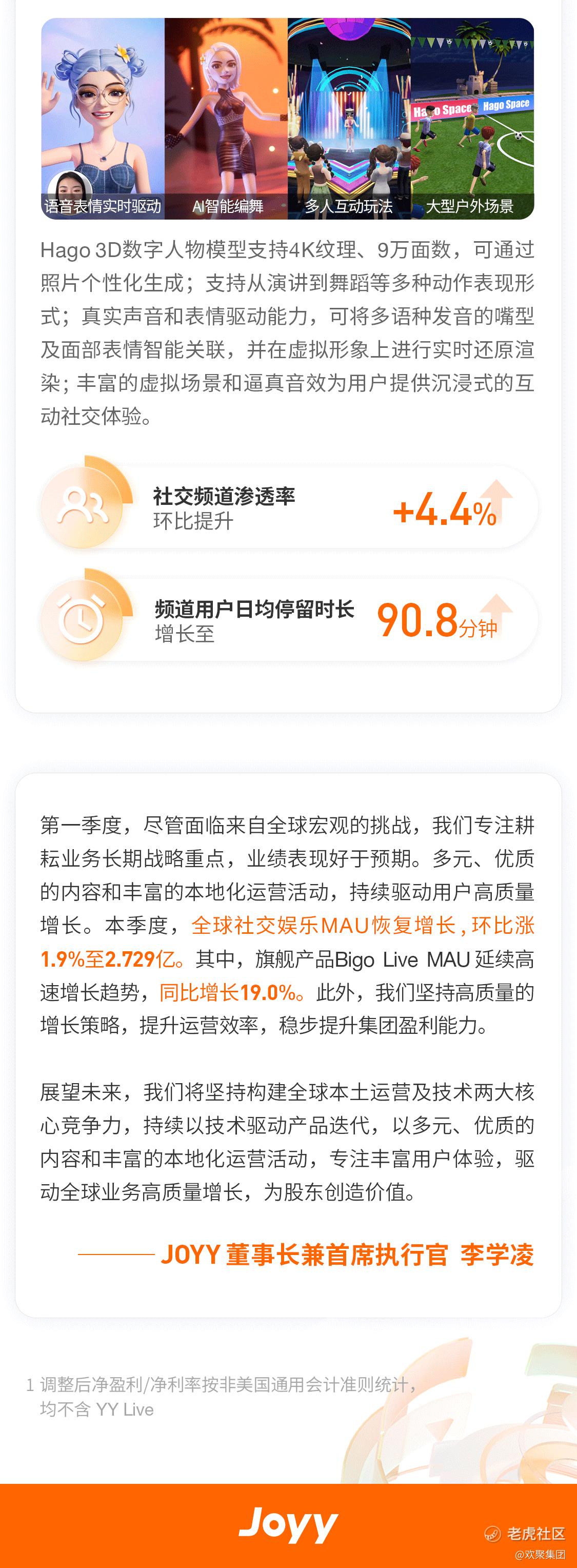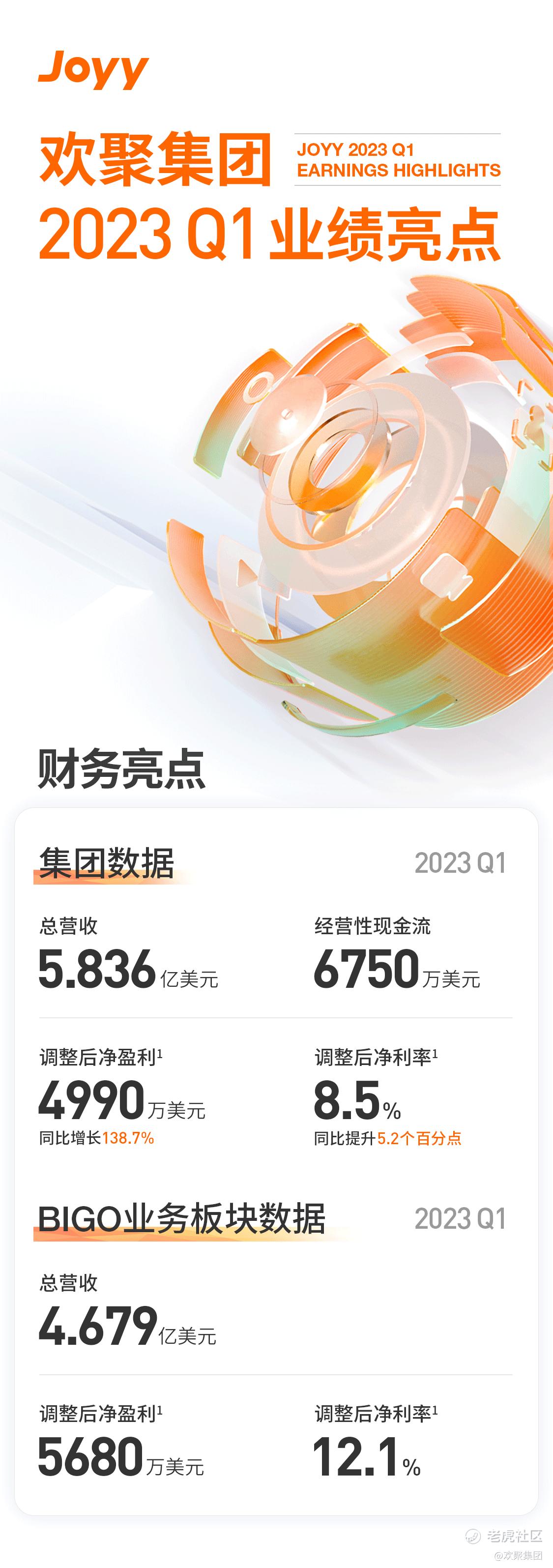 欢聚集团2023年Q1业绩亮点: