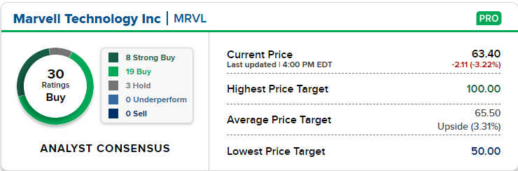 这家芯片制造商在人工智能竞赛中仍然是一个大赢家,但华尔街分析师表示,Marvell Technology也有望从这一趋势中获利。