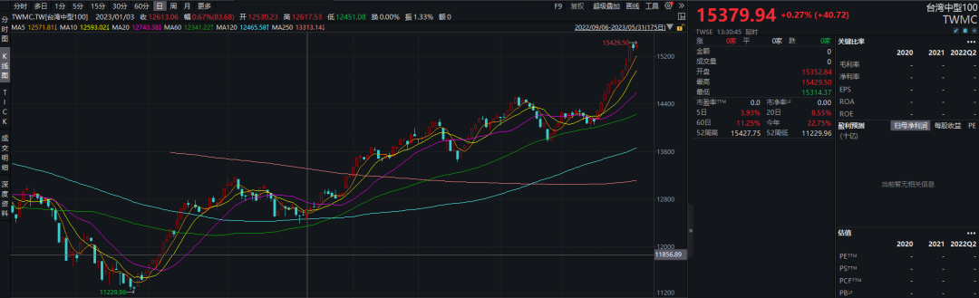 3、台湾加权指数,年初至今涨幅为17.27%。
