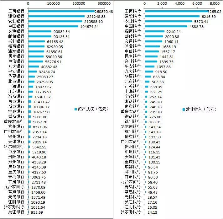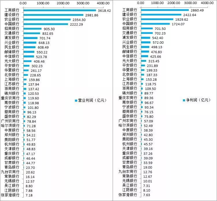 再附:41家上市银行总资产、营业收入、营业利润、净利润数据汇总。