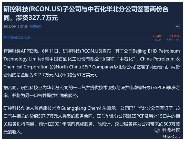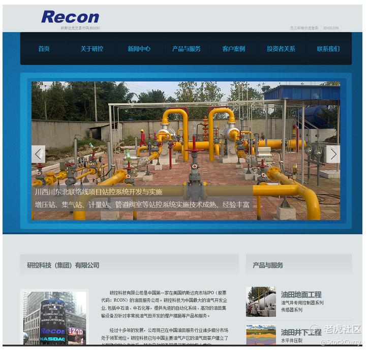 研控科技有限公司(纳斯达克交易代码:RCON)是一家中国油田服务公司。公司主要业务为油田自动化产品、油田增产措施及专用设备的研发和销售。研控科技为中国主要石油天然气公司提**品和服务,以帮助他们提高油气生产和运输效率。