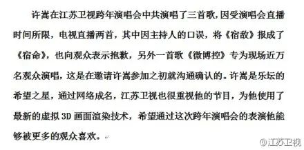 就在所有人都吹捧许嵩时,2011年12月31日江苏卫视跨年晚会的事件,给了许嵩和粉丝狠狠一击。