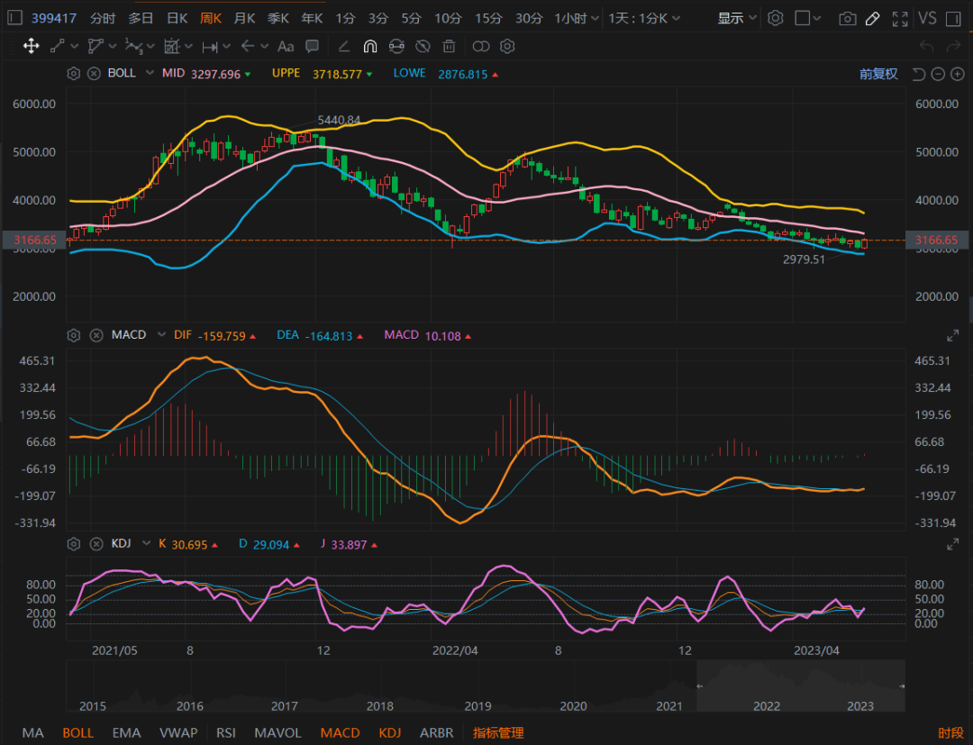 如上图所示:季度指标已经出现长期止跌信号,但并没有出现长期反转信号。