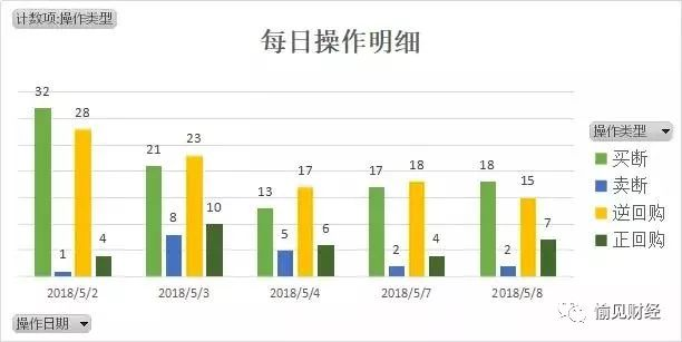 简评:统计数据显示,选手们操作最多的是买断和逆回购,分别占比40%。操作时间主要集中在上午9点到下午5点,合计占比达到72%。
