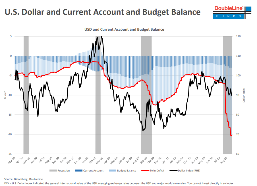 Gundlach对目前DXY点位(89-90)是中性观点,但是对于中长期DXY非常悲观(基于双赤字),有可能去到70以下。这个对资产配置有着巨大影响,甚至是引起债务危机的trigger。如果美国不是用巨大财赤去维系GDP,可能立刻就陷入负10%GDP倒退了。对黄金目前中性,但是基于美元贬值而长期看好。