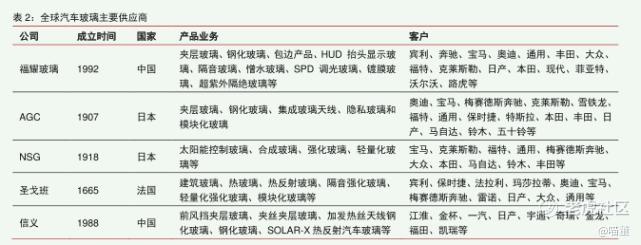 从全球汽车玻璃供应商可以看出福耀产品业务种类很多,客户也优质车系。