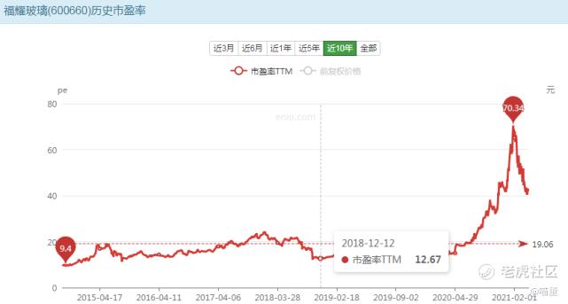 可以看到福耀近五年的净利润增长率并不稳定,19年下滑得很厉害。复合增长率我们就用2016年到2018年的计算,增长率为14.47%,考虑到2020年疫情影响下,汽车行业仍然不容乐观,对于未来3年的增长持保守态度,预计10%。