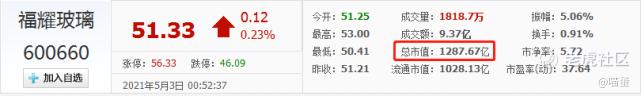 福耀玻璃目前的市值为1287.67亿,远高于我们的估值!