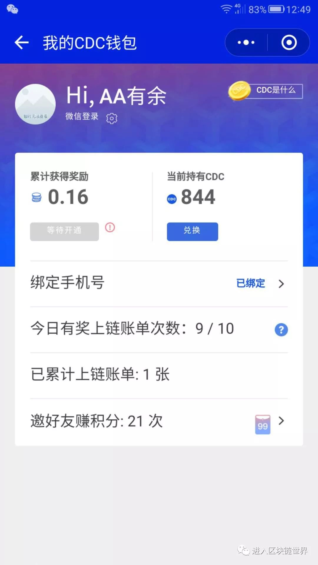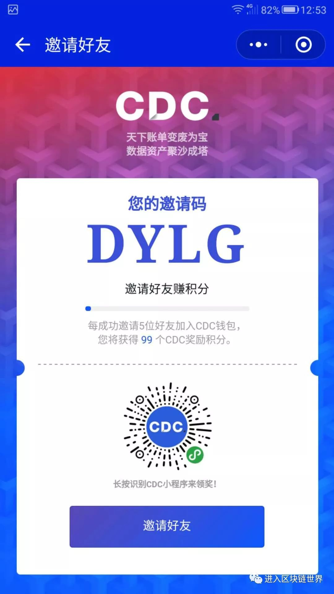 邀请5个人可以获得99个CDC。
