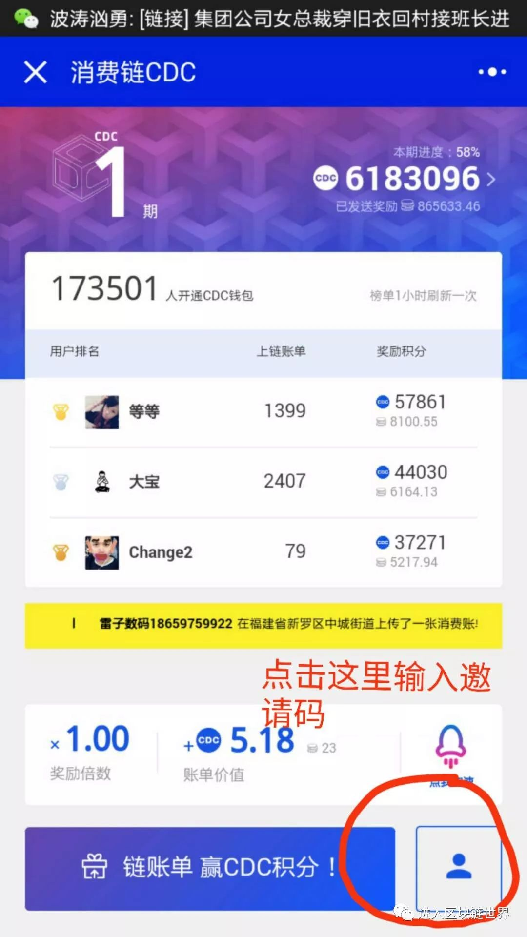 识别下面二维码,输入邀请码,开始领取免费的消费链CDC吧