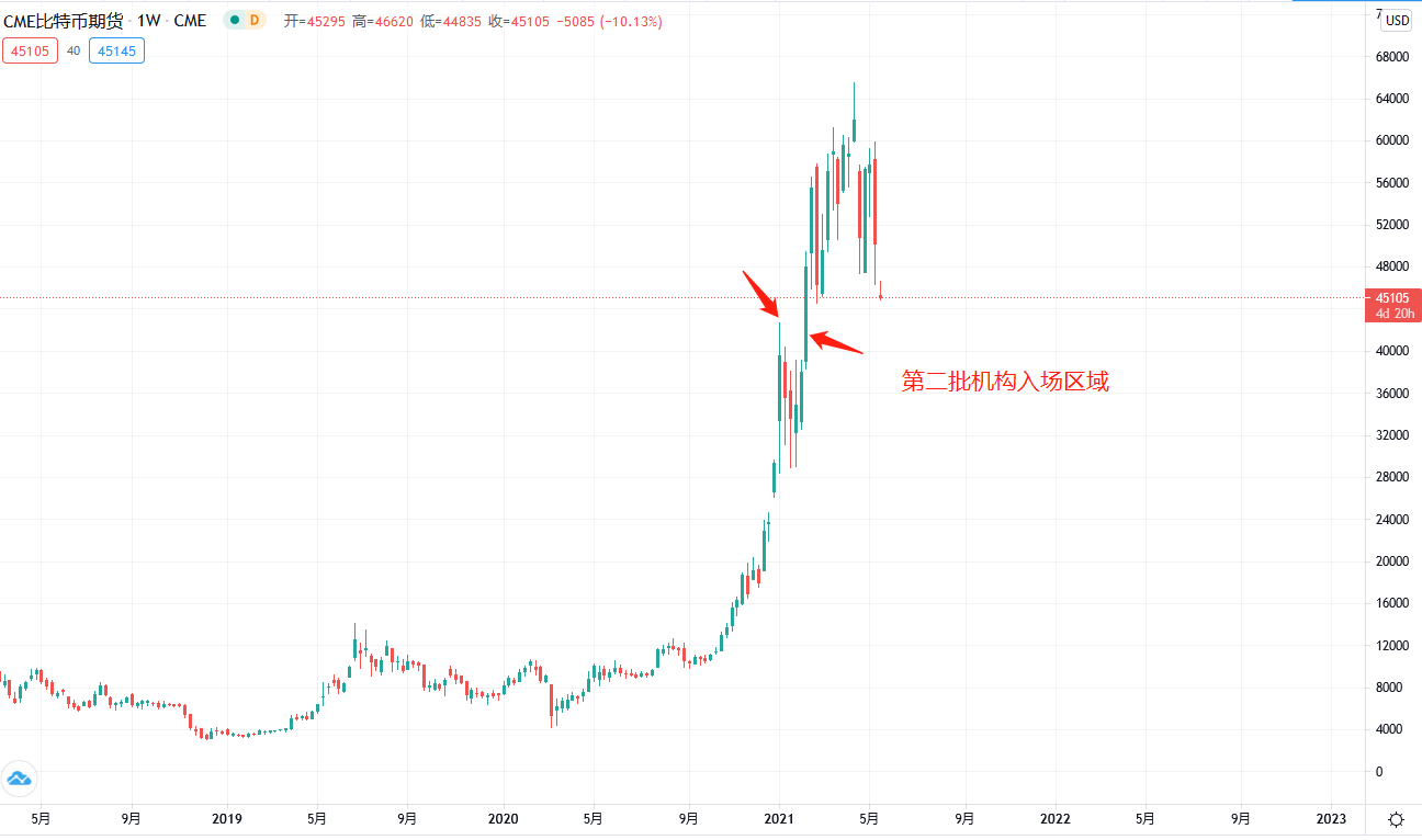 而从图形来说(尽管技术分析在币圈意义不是很大),比特币目前已经开始接近此前一个重要的多空交投区域,42000/39000是值得关注的支撑,跌破的话将意味着下跌可能会扩大到30000附近。