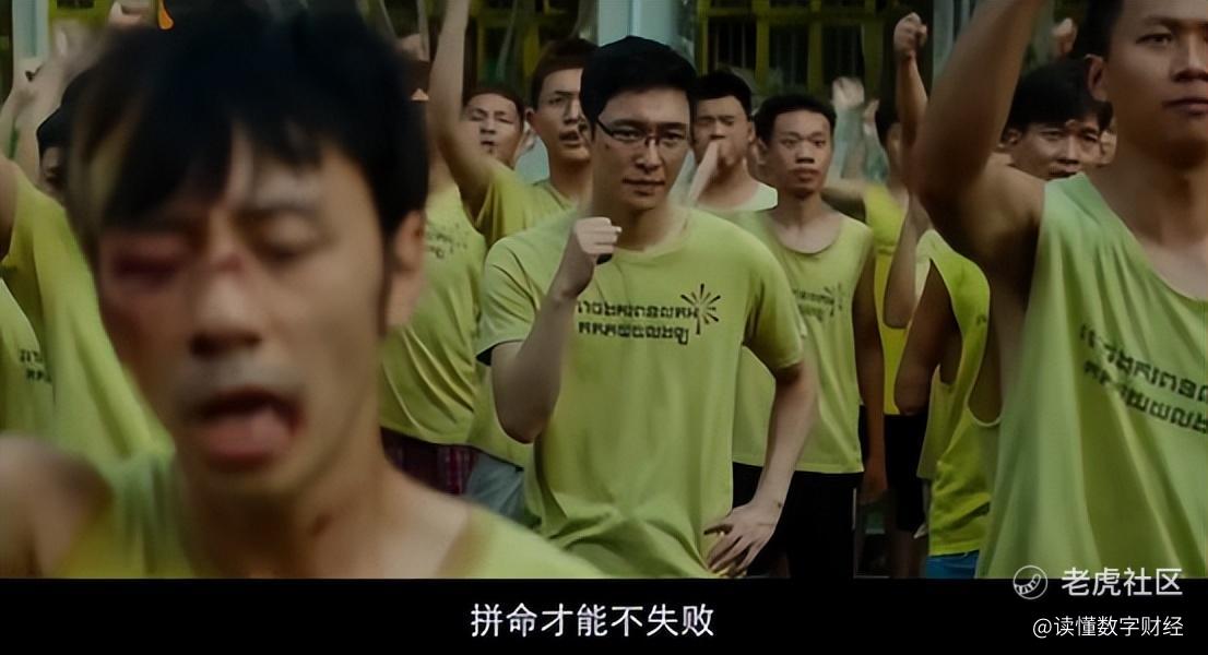 这疯狂的口号来自于张艺兴、金晨、王传君等人主演的反诈电影《孤注一掷》预告片,预告片中一群身材健硕的人拿着大喇叭做着“诈”前动员,另一群浑身是伤的年轻人机械的附和着。