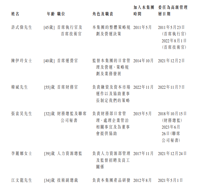 高管包括:董事会主席、执行董事、首席执行官兼首席技术官许式伟先生,执行董事、首席运营官陈伊玲女士,首席财务官韩斌先生,财务总监及联席公司秘书张袁昊先生,人力资源总监李丽娜先生,技术副总裁江文龙先生。