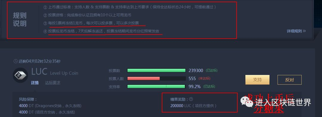 投票不消耗龙币,只锁定龙币7天,然后上币成功就可获得糖果,
