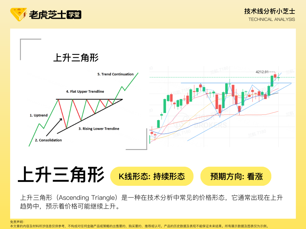 上升三角形(Ascending Triangle)是一种在技术分析中常见的价格形态,它通常出现在上升趋势中,预示着价格可能继续上升。