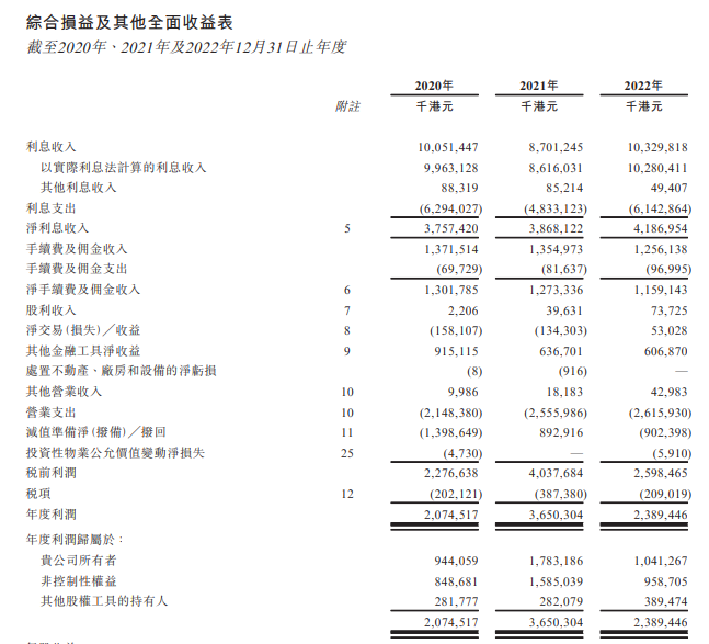 招股书显示,在过去的2020年、2021年和2022年,厦门国际投资的利息收入分别为100.51亿、87.01亿和103.30亿港元,相应期间的净手续费及佣金收入分别为13.02亿、12.73亿和11.59亿港元,相应期间的净利润分别为20.75亿、36.50亿和23.89亿港元。