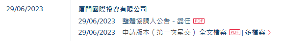 2023年6月29日,来自福建厦门的厦门国际投资有限公司 XIAMEN INTERNATIONAL INVESTMENT LIMITED(简称"厦门国际投资”)向港交所递交招股书,拟在香港主板挂牌上市。