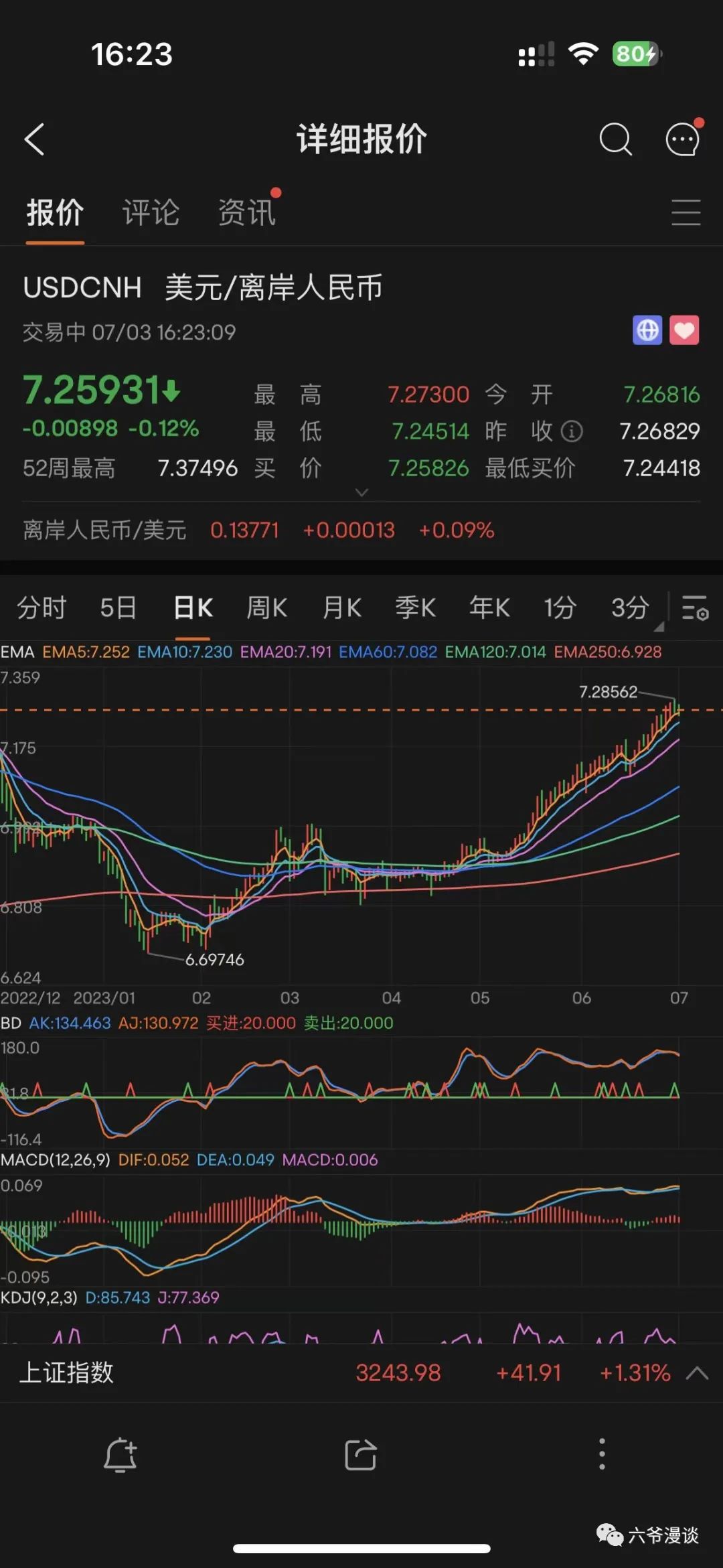 汇率这个东西,影响的因素很多,群里也聊过很多次了。没什么特别好的方法,只能说是双边下注,做一些资产配置。如果只有人民币资产,那肯定或多或少要做一些美元/港币配置的,不然万一打破历史,汇率到8,那就GG了。
