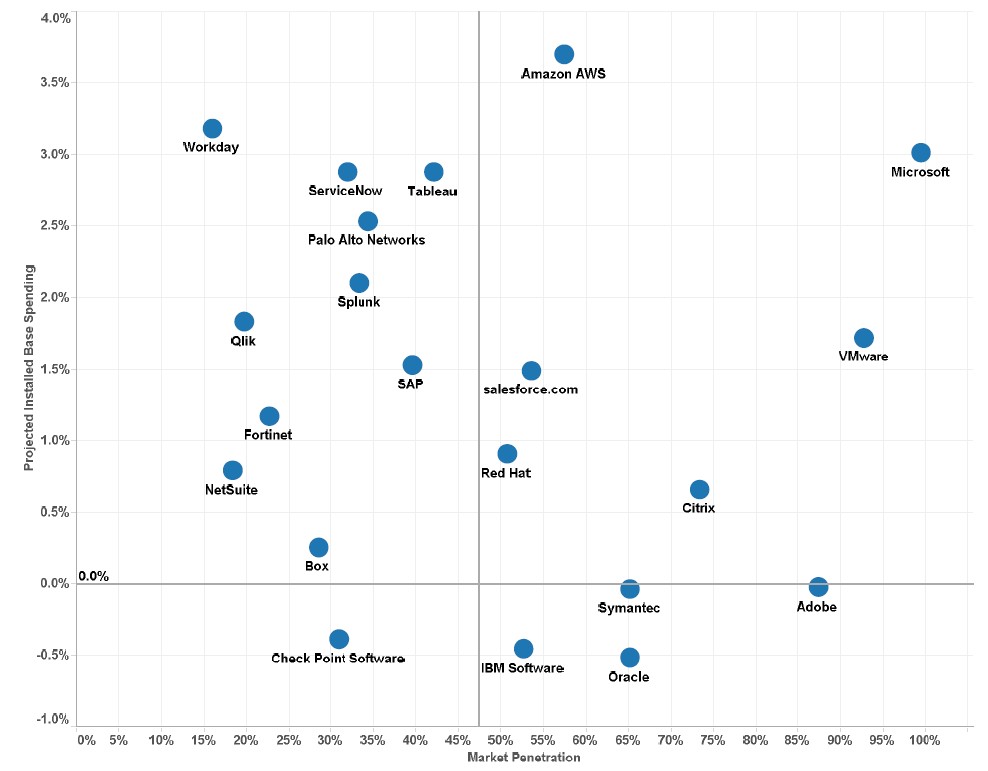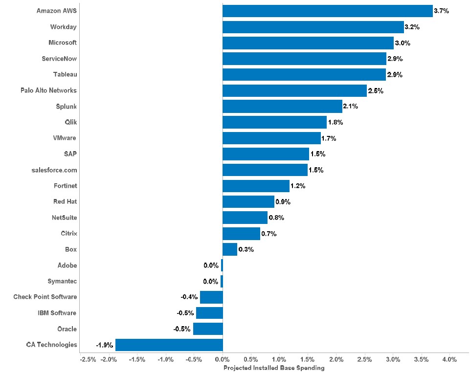 $亚马逊(AMZN)$$Workday(WDAY)$$微软(MSFT)$$ServiceNow(NOW)$$Tableau Software(DATA)$$Palo Alto(PANW)$$Splunk(SPLK)$$Qlik Technologies(QLIK)$