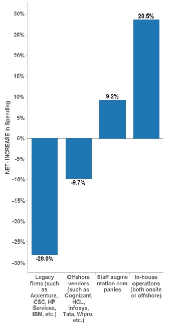 图六:未来对于IT服务的支出(更多倾向于内部而非外包)