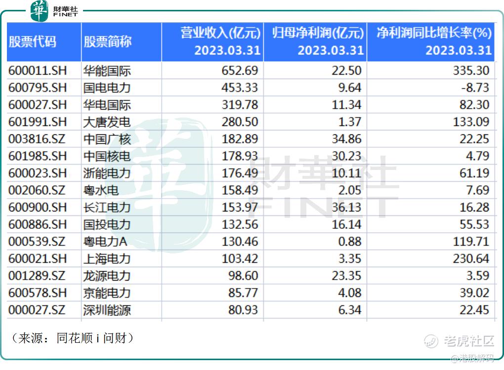 根据同花顺i问财数据显示,A股电力板块共有95家公司,财华社整理2023年一季度业绩情况如下。
