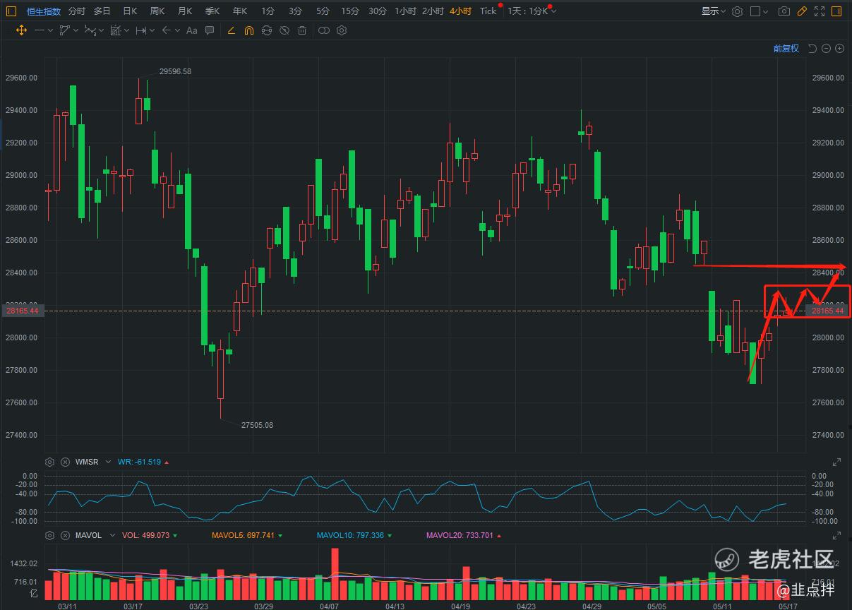 今天恒指表现的还不错,震荡上行,后续的话没有太多看空的理由,但是这位置想一下子上去的可能性也不大,因为成交量比较小,需要时间消化一下应该问题不大,后市依旧是看恒指震荡向上反弹,回补上方28453-28286这缺口为主。