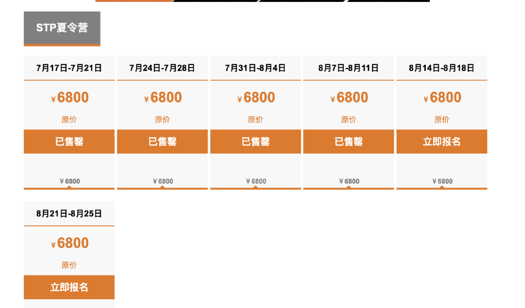 除此之外,官方还有开设相应的培训课程,分为成人训练营和儿童训练营,价格在百元至万元不等,最近北京的一场儿童夏令营每期四天,费用是6800,并且大部分都显示已经售罄。