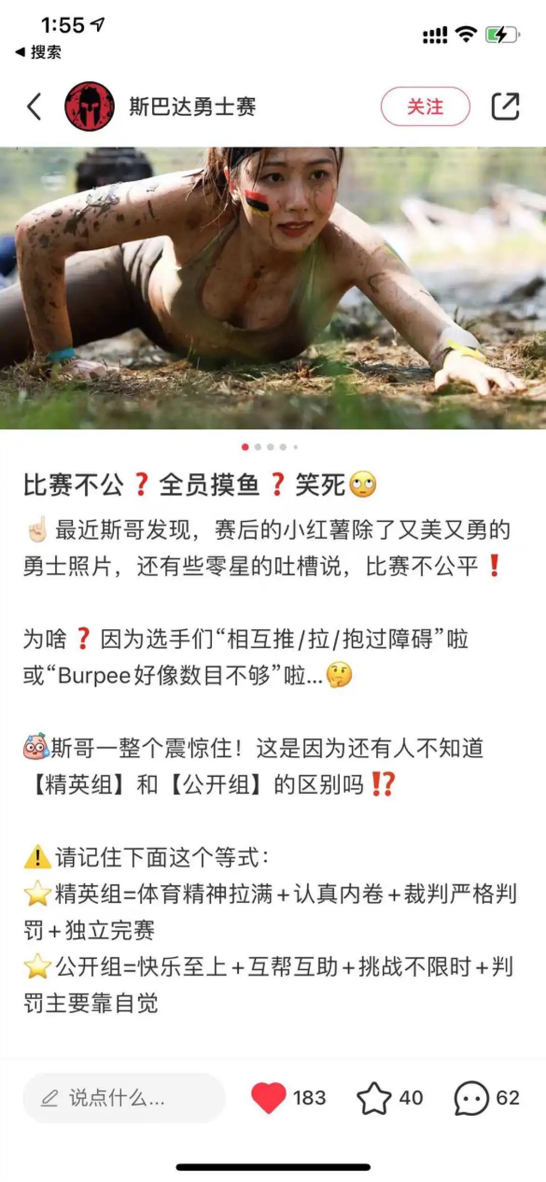小红书上有人分享斯巴达勇士赛“划水指南”,专门为想去玩又怕吃苦的参赛选手准备,在每个环节都有适合的开挂小技巧。