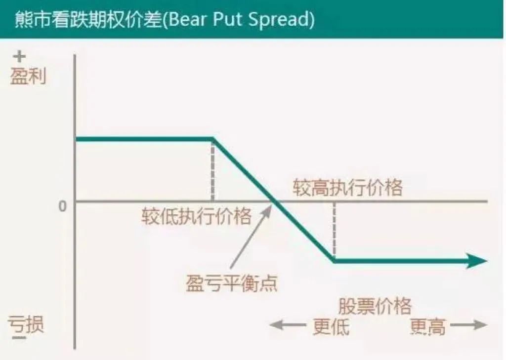 熊市看跌期权价差策略是买入某一个标的股票的看跌期权,同时卖出一份同一标的股票、同一到期月份、执行价格更低的看跌期权。