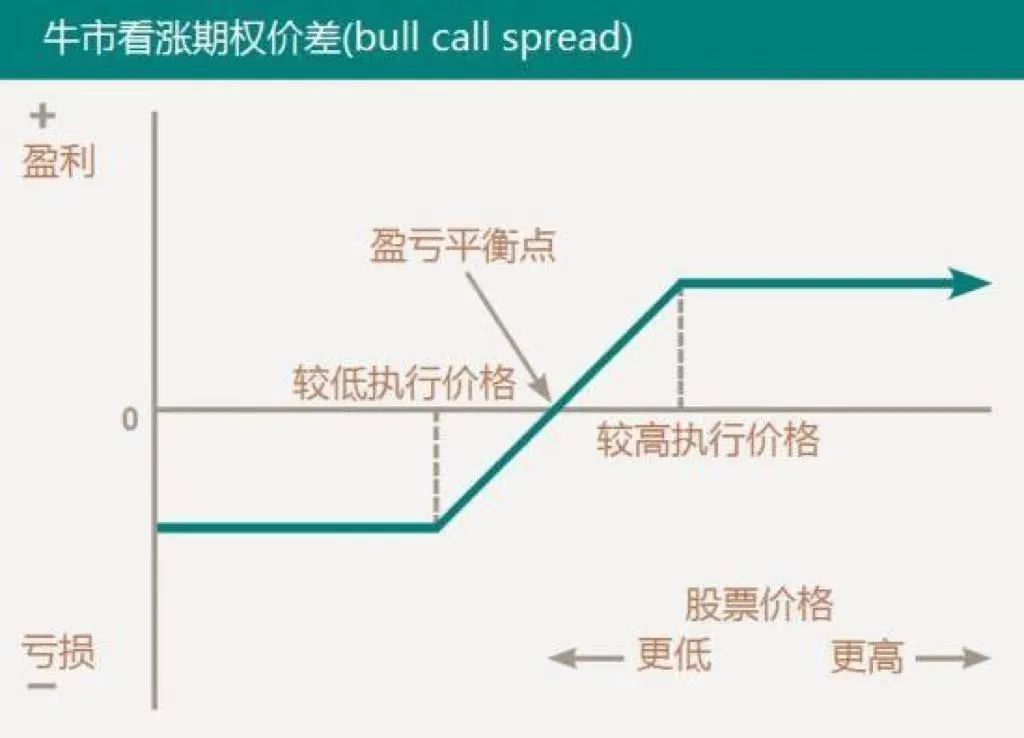 投资者通常在温和看涨的市撤境中采用牛市看涨期权价差策略,希望能够从标的股票价格的小幅上涨中获利。如果投资者对股票强烈看涨,那么直接买一份简单的看涨期权通常可以获得更大利润。