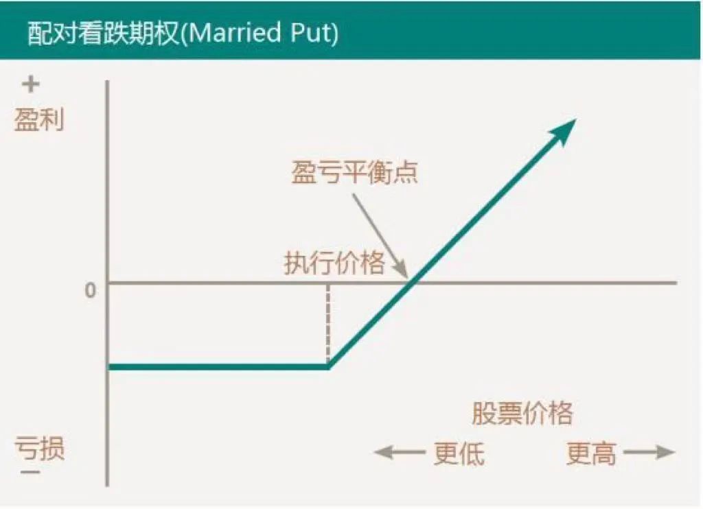 投资者可以通过购买一份看跌期权、同时购买标的股票同等数量股份的方法来建立一个“配对看跌期权”头寸。这是一种对冲策略。