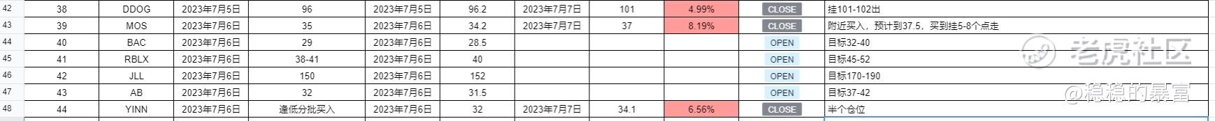 上周结束,除了带目标价的都出了,记得要适当止盈。目标价格这周看情况也适当止盈。$美国美盛(MOS)$ $Datadog(DDOG)$ $三倍做多富时中国ETF-Direxion(YINN)$