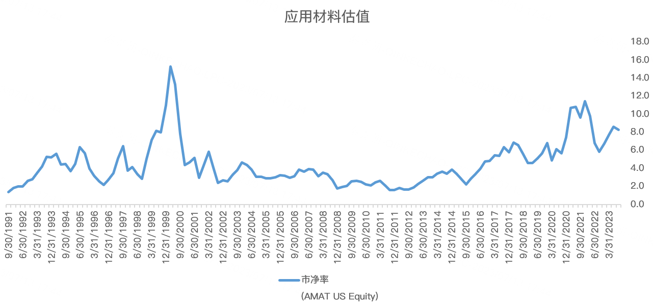 随着盈利能力的提升,应用材料的估值也水涨船高,用传统的市净率估值看,当下处于历史较高位置: