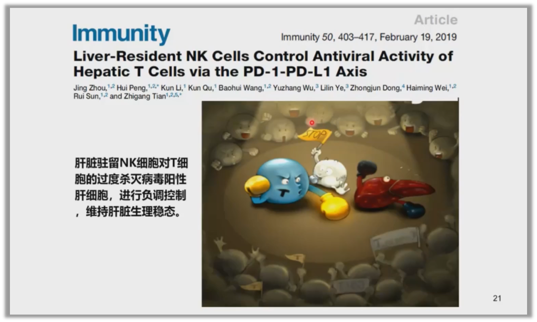 在免疫过度所导致的各种疾病中,NK细胞是重要的控制者,它像一个公正的裁判防止T细胞过度进攻,进而维持肝脏的生理稳态。