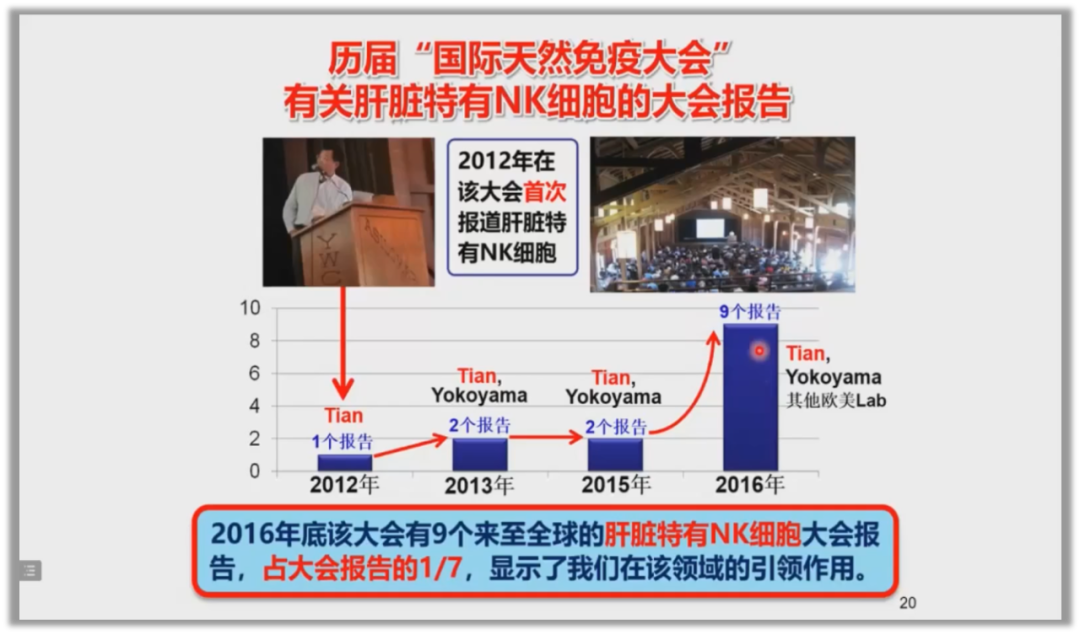 驻留NK细胞被发现4年之后,田院士在2012年国际大型学术会议进行相关研究报告,这个会议每次基本包括60个报告的汇报交流。