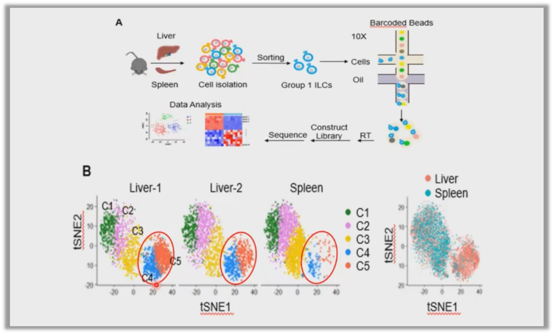 他们发现这类特有的NK细胞在肝脏中占比很高,达50%,研究人员猜测这群细胞有不同的谱系。