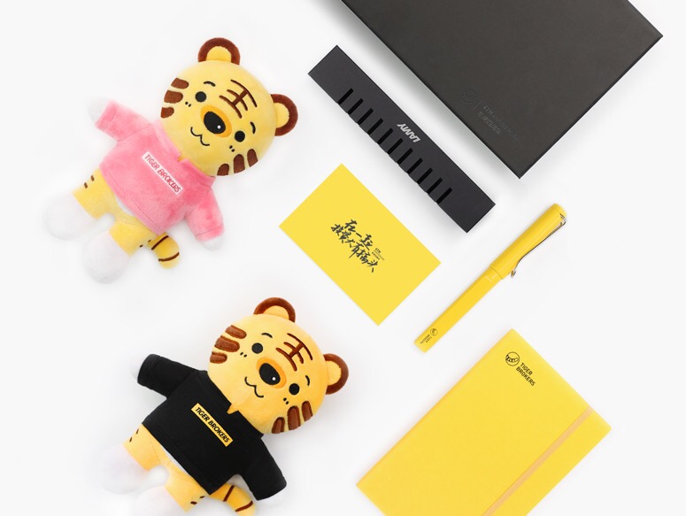 老虎四周年纪念礼盒一个:四周年纪念款LAMY宝珠笔一支;四周年纪念款老虎公仔一个、四周年纪念款老虎笔记本一本。