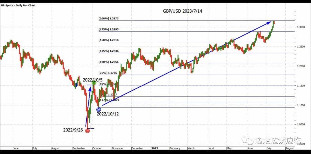 英镑非常接近200%阻力位,周四周五的最高点相同,周五下跌。