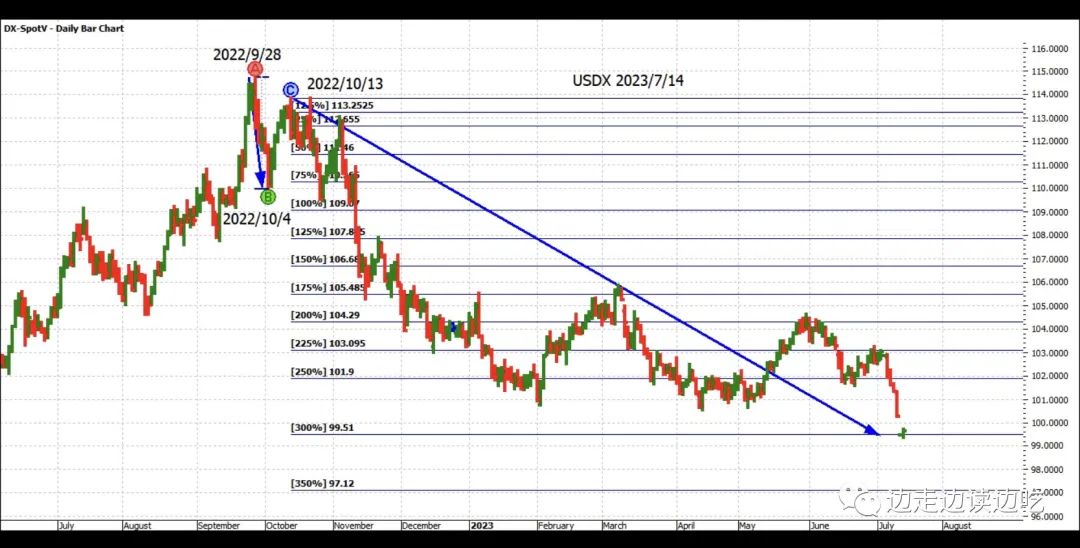 1. USDX is currently at the 300% downside resistance level, which could potentially act as a support level if USDX starts to rise from here next week.
