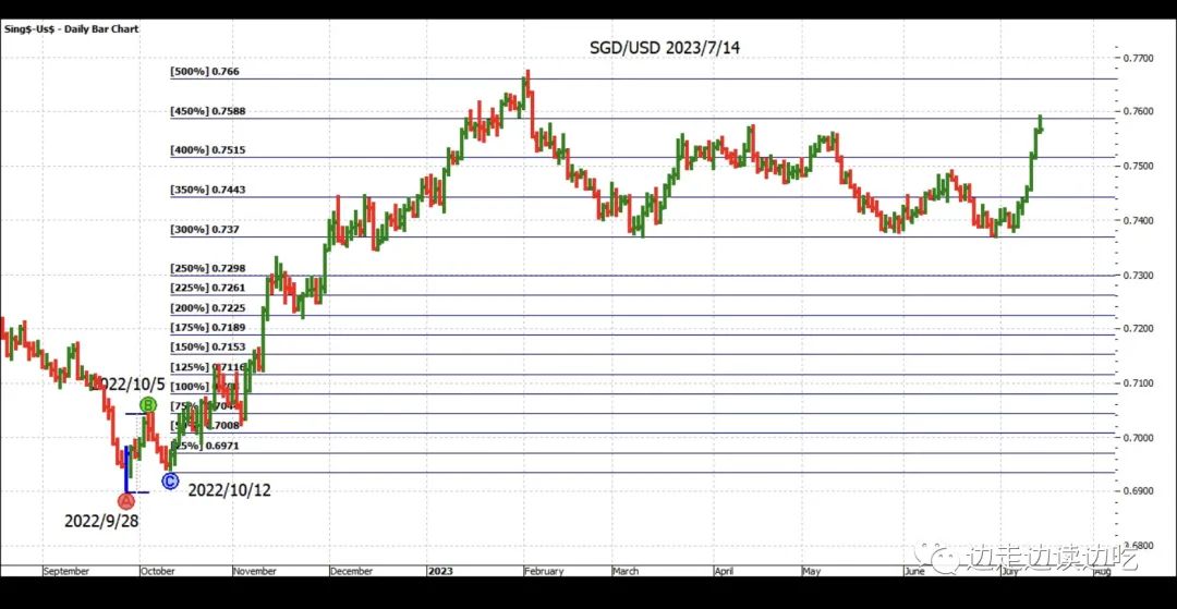 7. Last week SGD/USD surged from a triple bottom at the 300% support levei to 450% resistance level, it may experience a pullback next week .