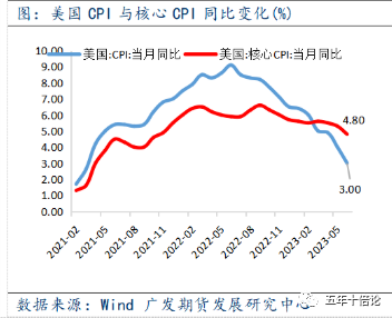 7月12日晚,美国公布6月CPI,美国公布6月CPI通胀数据,CPI同比增3%,小幅低于预期3.1%,创2021年3月以来新低,核心CPI同比增4.8%,亦低于预期5%达1年多低位,从分项看能源商品和服务价格持续负增为主要带动通胀回落因素。