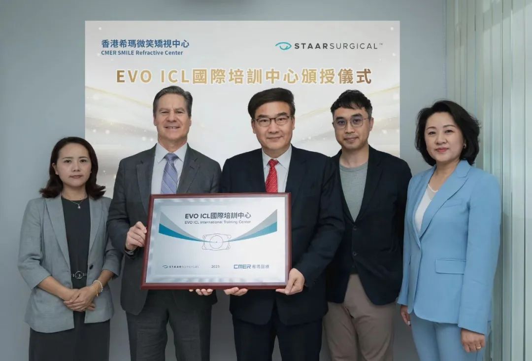 7月20日,EVO ICL国际培训中心颁授仪式在希玛眼科香港总部隆重举行。希玛眼科集团主席林顺潮教授、STAAR Surgical全球副总裁David Choromanski先生、STAAR Surgical集团客户销售总监董雅丽女士、STAAR Surgical区域销售经理陈小凤女士、香港希玛市场总监刘威麟共同出席了本次颁授仪式。