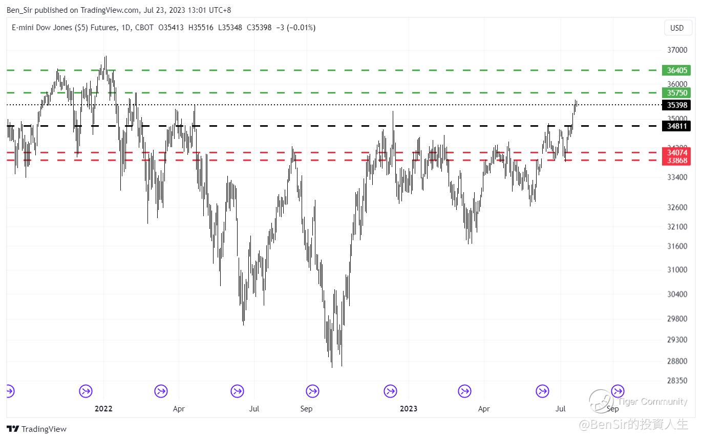 指数升势明显,但升势过急预期可能会出现调整,未来有机会下测34810至35120支持区,如企好,指数将会延续升势,未来有机会突破上试35750、36400。如支持区失守,则指数有机会下试33868至34074
