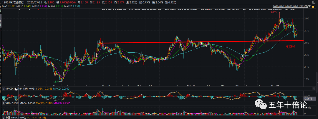 从股价是哪个来看,农业银行还是一个比较稳健的股票,股价总体上是不段的增涨的趋势,自上市以来,年化收益率能达到了4.78%。
