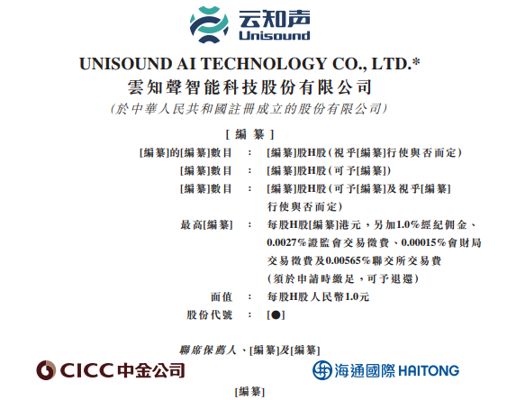 云知声,递交招股书,拟香港IPO上市,中金、海通联席保荐