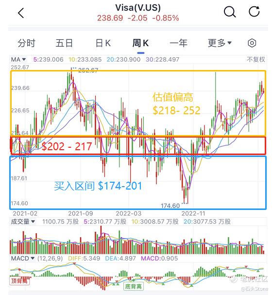 考虑到总营收,净利润,以及市场当前情况进行估值,我个人认为目前Visa股价处于高估。根据本次财报公布的内容以及财务情况,Visa股价应该在每股202 - 217美元之间才是合理估值。