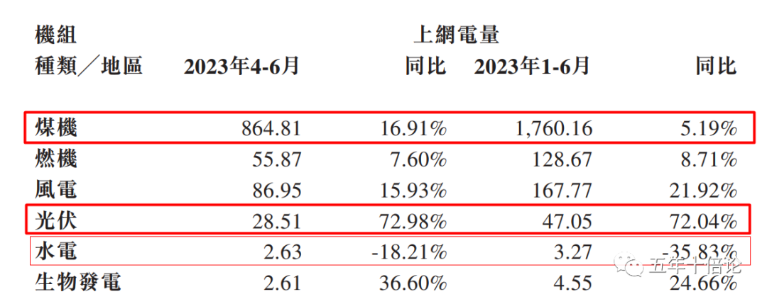 (4)供给不足来自于水电降低,但是公司用火电+新能源抓住了机遇。由于全国来水不足,造成全国水电发电量降幅较大;华能国际合理安排火电机组运行方式和检修工作,发挥顶峰保供作用,火电发电量同比增长较多。同时,公司风电和光伏装机容量持续增长,新能源发电量增幅较大。