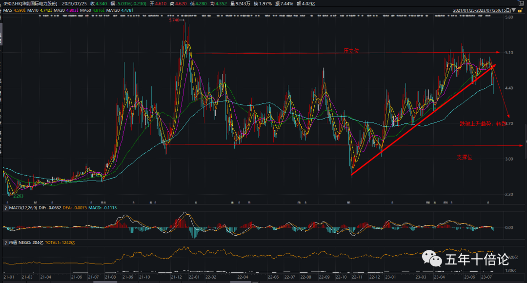 (4)短期看,股价偏空为主。中长期看,华能国际大概率会涨到前高点。