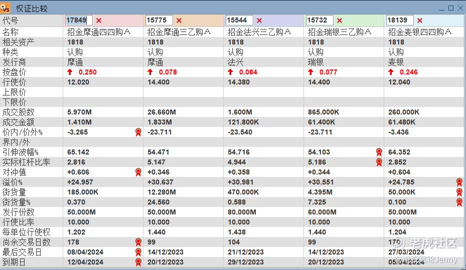 招金矿业认购证街货增加5.1%。2023年12月到期,价外30% 的认购证街货增加最为明显。其次为2023年12月到期,价外40% 的认购证为第二大街货增加产品。招金矿业认购证整体成交额减少67.8%。